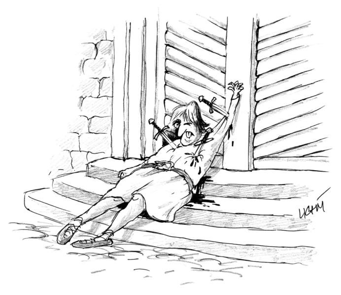 „Jdi se vycpat!”16) Boleslav se rozzuřil. „Zabiju tě!” zařval. „Braň se!” a namáhavě vydoloval meč z pochvy. Kymácel se a mával kolem sebe zbraní. Václav ho znechuceně pozoroval. „Dej to pryč,” řekl rozmrzele, „ještě si ublížíš…” Ale opilec vymrštil ruku a Václav sotva stačil uskočit. „Do pytle s tebou!” zvolal a tasil taky. Na smůlu v tu dobu přikvačila Boleslavova ochranka, která měla příkaz pána permanentně chránit. Už teď se muži strachovali o svůj osud, když jim velitel ráno unikl z dosahu. V chuchvalcích mlhy uviděli Boleslava, jak se kácí k zemi, a nad ním chlapa s obnaženým mečem mířícím mu na hruď. Nezaváhali ani okamžik. „Tak už snad dáš pokoj a necháš mne jít na mši,” dořekl právě Václav, když bratrovi vyrazil meč a chystal se zasunout svou zbraň. Vtom ho zasáhla do paže rána od cizího chlapa a meč mu vypadl z ruky. Václav se dal vylekaně na útěk ke kostelním vratům, ale ta byla zavřená. Tam ho dostihli další členové ochranky. Tři meče připíchly nebohého knížete na dřevěná vrata. Pár metrů za nimi se z mlhy těžce zvedala vrávorající postava a volala: „To je nedo… nedoro… To je omyl, pánové…” „Ne, ne, ne…,” vyl Podiven nad bezvládným tělem svého pána, „takový práce jsem si s ním dal, abych ho praktickýmu životu vyučil…, a když jsem ho konečně vypiplal…., tak mi ho zabijou!” Ale byl to muž činu, tak nekvílel dlouho a dal se do pátraní po vrazích. Řekli mu o ochrance. Hledal, hledal, a našel prvního, Hněvsu. „Seš vrah českýho knížete, sviňáku!” vykřikl zuřivě. „Nevěděli jsme, kdo to je,” odsekl Hněvsa. „Dělali jsme jen svou práci.” „Tak to byla tvá poslední!” zařval Podiven. Vytáhl dýku, a než se Hněvsa stačil vzpamatovat, vězela mu v srdci. Jenže u toho bylo dost svědků a ti zalarmovali vojáky. Podiven daleko neutekl. Dostihli ho, svázali a přivezli do dvorce. Přes krakorec přehodili tlustý provaz, oprátku upevnili Podivenovi na krk a pomalu ho vytáhli do výšky. Dlouhé kruté minuty se zmítalo nešťastníkovo tělo v pomalém rdoušení. Oči mu vylezly z důlků, otevřená ústa s promodralým zduřeným jazykem marně toužila po životodárném vzduchu…, než se jeho ztrápená duše konečně vydala za svým pánem. |