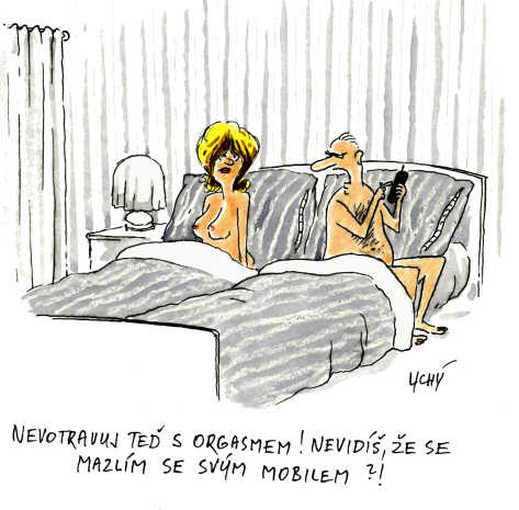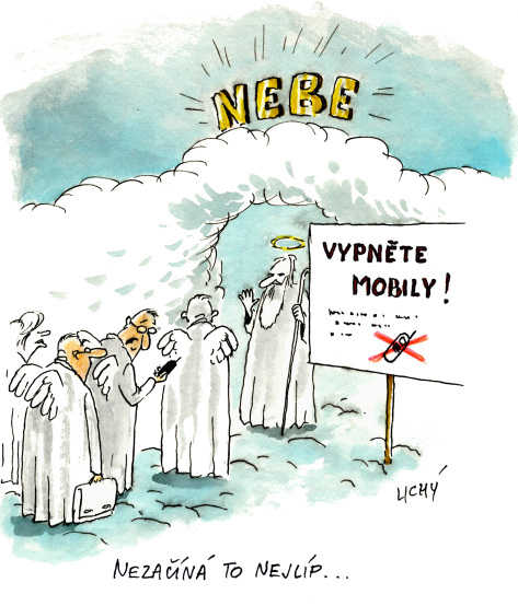 Tři malé dárečkyUpozornil mě přítel Luba Lichý, že jsme spolu udělali ještě tři malé knížečky do edice Dáreček nakladatelství Ivo Železný. Každá měla třicet stran rovnoměrně rozdělených na krátké texty a kreslené vtipy. Mávnul jsem jen rukou - kdeže loňské sněhy jsou… Po čase mi to však nedalo a šel jsem se na ně podívat. No, texty… snad některé přežily a fóry… všechny! Tak možná pro zajímavost a pro vzpomínku na začátek nového tisíciletí… NEBOJME SE MOBILNÍCH TELEFONŮJsou vaše děti zamlklé? KUPTE JIM MOBILNÍ TELEFON! „Ach… sakra… zhasnul mi displej a já teď nevím, kdo mi volá…” „Ale milé dítě, já jsem tvá babička 605 345 678…” „Ty si ta babička, která mi čte před spaním pohádky?” „Ne, ne… pohádky ti čte babička 777 639 639.” „Ale ne, babi, babička 777 639 639 mi čte horory na dobrý ráno…” „Tak vidíš, už si to pletu… Pohádky ti čte babička 601 851 937.” „No vidíš… ale proč dnes nevolá?” „Asi jí do toho něco vlezlo. Mám ti říct pohádku já?” „Ne, ne, to bych v tom měla guláš… ty mi radši řekni, co dělá můj první táta.” „Ale děvenko, to já nevím, já jsem máma tvý druhý maminky…” „Tak mi vyprávěj vo ní…” Má drahá, rozhlédněte se kolem. Procházíme parkem a co vidíme: šeříky pomalu odkvétají, ale na záhonu ještě září tulipány. Tady na trávě právě sedá žluťásek na pampelišku… a tamhle na ten dub šplhá veverka… A teď se podívejte na lidi: muž v saku zírá na levou ruku, do které zuřivě klofá rukou pravou. Jakási žena pobíhá zmateně po parku a vykřikuje svá důležitá sdělení komusi zřejmě nahluchlému. Tenhle muž s telefonem na uchu vedle nás se chová klidně, ale podívejte se mu do očí… ne, nemějte obavy, drahá, on nás nevidí… jeho zrak je kilometry vzdálen, někde ve firmě nebo u nějaké děvy… On, ani ti druzí, nevidí nás dvě, ani ten krásný kout přírody uprostřed velkoměsta… jen klofají a hulákají… Říkají tomu technologický pokrok… |